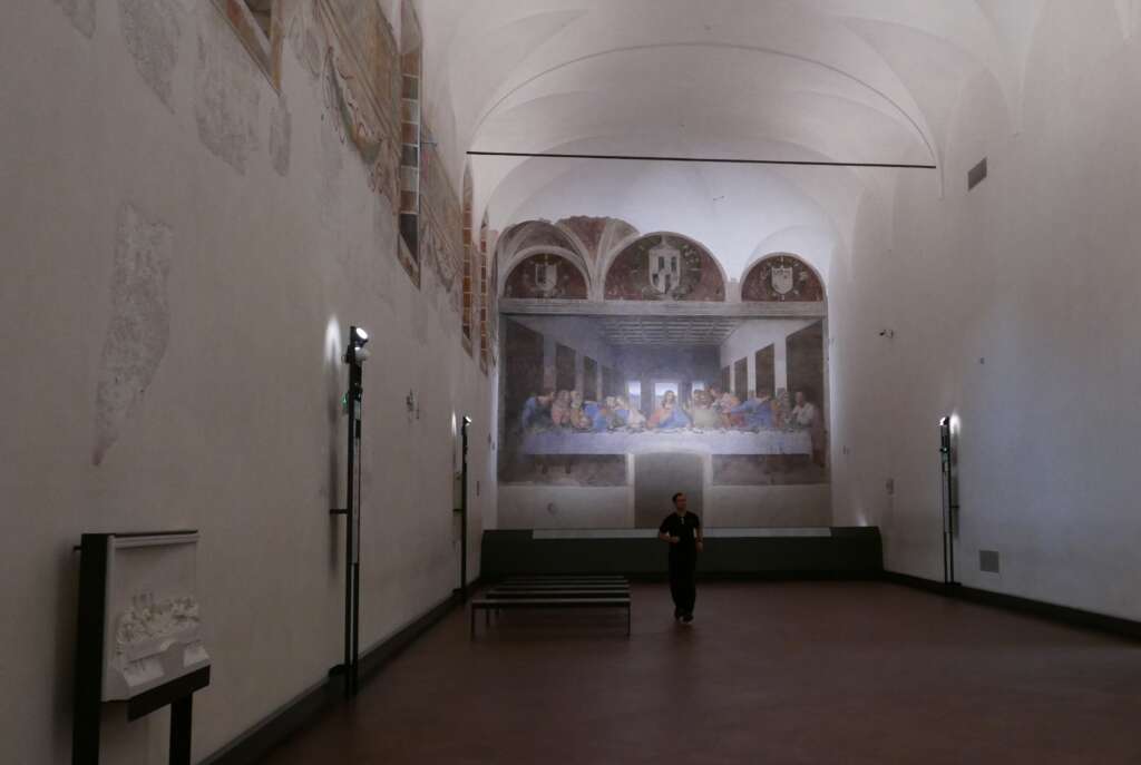 Restaurační práce, které probíhaly dvacet let a byly dokončeny v roce 1999 sledoval napjatě celý svět. Na zeď tehdejší jídelny mnichů, asi aby se jim lépe večeřelo, vytvořil Leonardo působivý 8,5 metru dlouhý nástěnný obraz. Geniálně na něm vyjádřil emocemi nabitý okamžik Jidášovy zrady Ježíše Krista. Obraz se však, žel, začal rozpadat již od chvíle jeho dokončení v roce 1495.