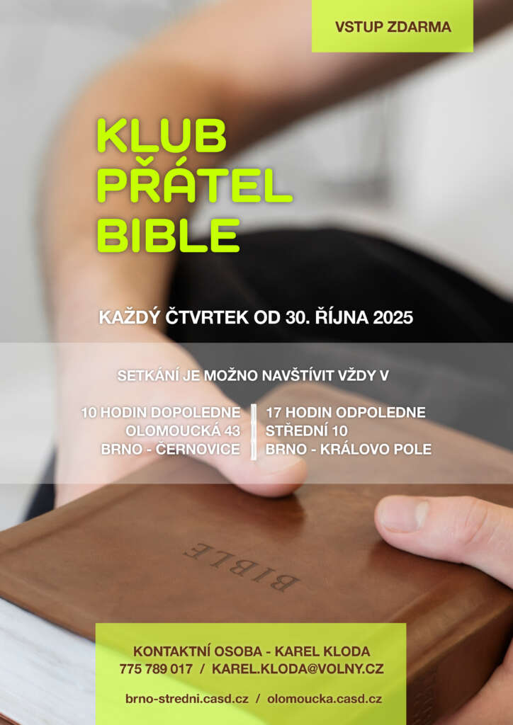 Moc se těšíme na setkání s Vámi a sdílení osobních zkušeností s vírou v Boží Slovo – Bibli.